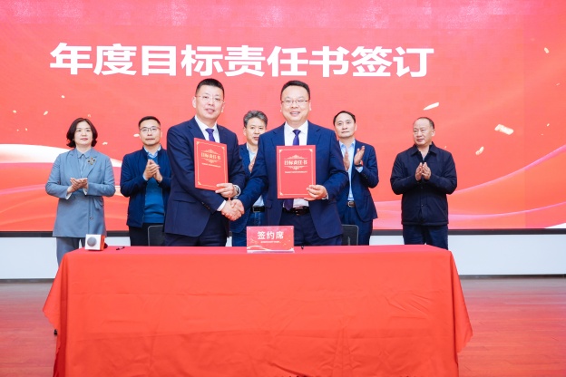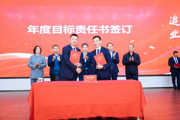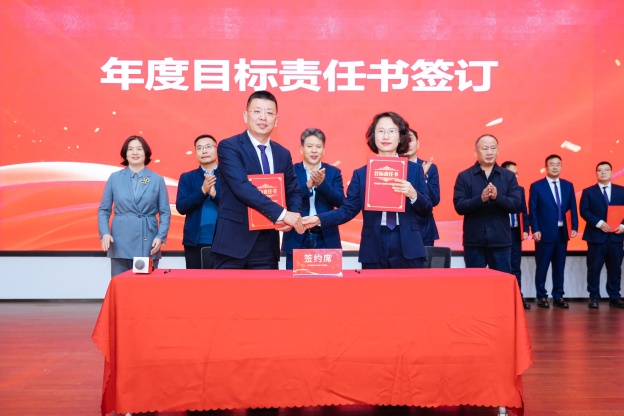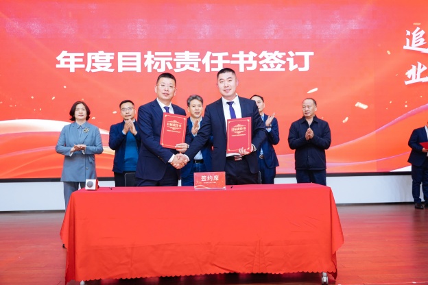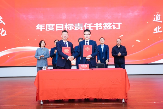 心怀目标,肩负责任。友利医药各一级单位负责人依次签署了2026年度目标责任书,并进行表态发言,展现了各团队全力以赴完成目标任务的坚定决心与昂扬斗志。
