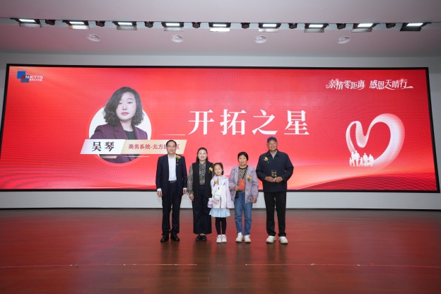 在热烈的掌声中,获奖员工与家人携手登上领奖台,从公司领导手中接过奖杯与奖金。